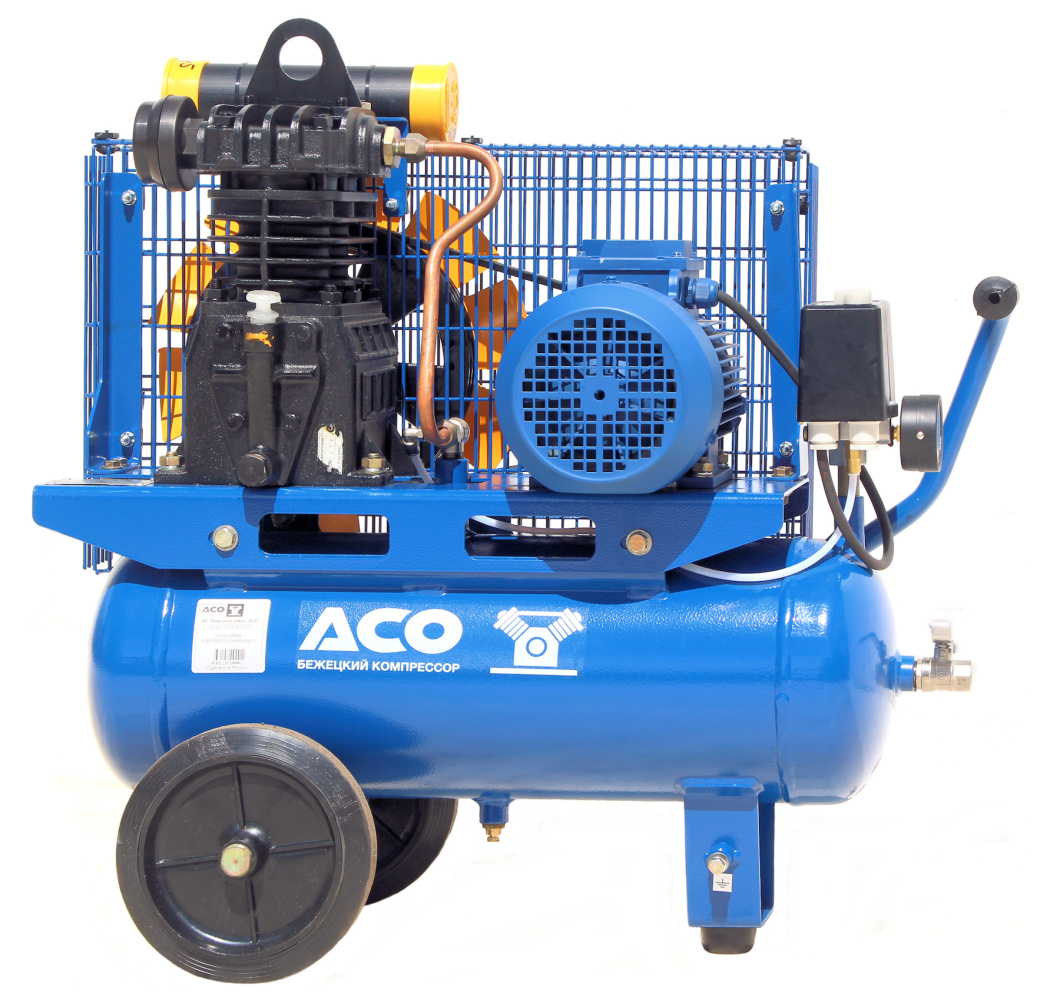 Передвижной поршневой компрессор К29-01 производства Бежецкого завода АСО. Данный компрессор оборудован ременным приводом от однофазного электродвигателя мощностью 2,2 кВт. В конструкции используется компрессорная головка С412М. Объем ресивера составляет 20 л. Номинальная производительность данного компрессора 360 л/мин, в то время как производительность по нагнетанию 275 л/мин. Компрессор обладает максимальным рабочим давление равным 8 атм. Габаритные размеры агрегата составляют 80 х 40 х 80 см, при массе 80 кг.