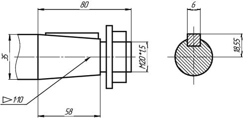 Вход — цилиндрический, выход — конический.