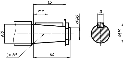 • Квх/Цвых — конический входной вал (под муфту), цилиндрический выходной вал.
