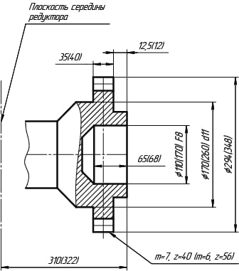 | Исполнение входного и выходного валов | Ц, К, М, П (Цилиндрический, Конический, c зубчатой Муфтой, Полый) |